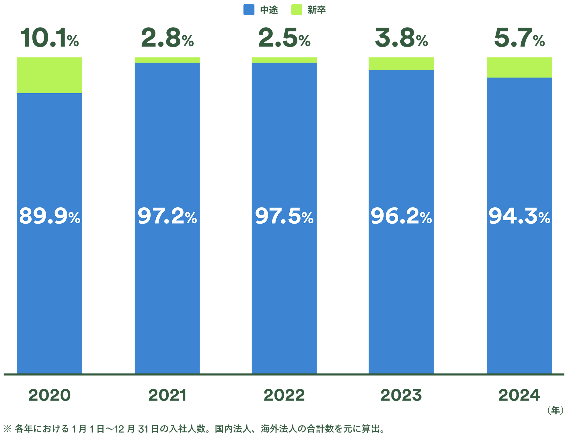 様々な職種・国籍・ジェンダーなどの違いを超えて、協力し合い交わることで、ひとりでは見つけることができなかった新しい挑戦、イノベーションを生み出していきます。(掲載している数値情報は、特段の記載がない限り、2024年12月31日時点(経年データは各年12月31日時点)の国内外法人の在籍従業員を対象としています。)